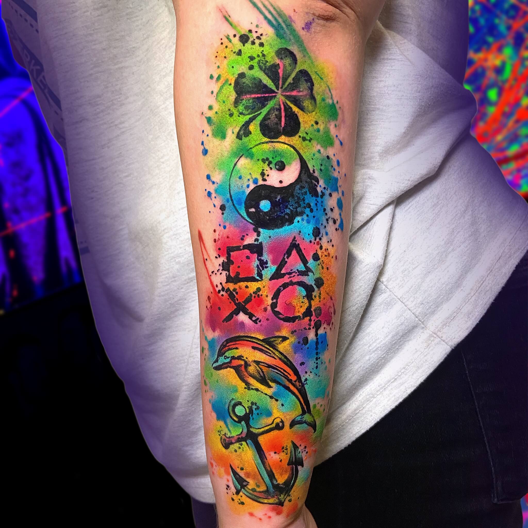 Únete en el un mundo de los colores vibrantes y las formas fluidas mientras nuestros artistas transforman tu piel en una obra de arte única y cautivadora.